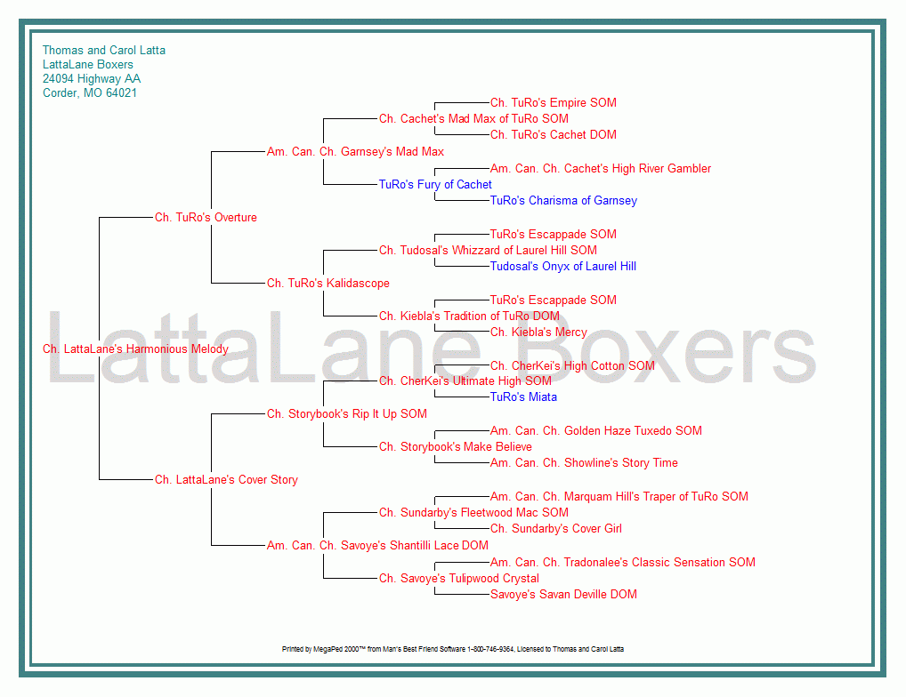 LattaLane Boxers 24094 Highway AA, Corder, MO 64021 Thomas & Carol Latta boxers@lattalaneboxers.com